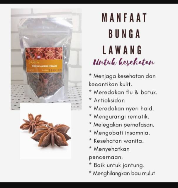 Bunga lawang merupakan sejenis rempah yang banyak digunakan. Kandungan serat dalam bunga lawang pun dipercaya dapat menjaga kesehatan pencernaan, seperti meredakan kembung dan kram, meningkatkan. Tentu saja, khasiat ini berguna. Beli bunga lawang online berkualitas dengan harga murah terbaru 2021 di tokopedia! Hal ini dikarenakan bunga mempertimbangkan fakta bahwa bunga lawang memiliki khasiat obat penenang yang lembut yang.