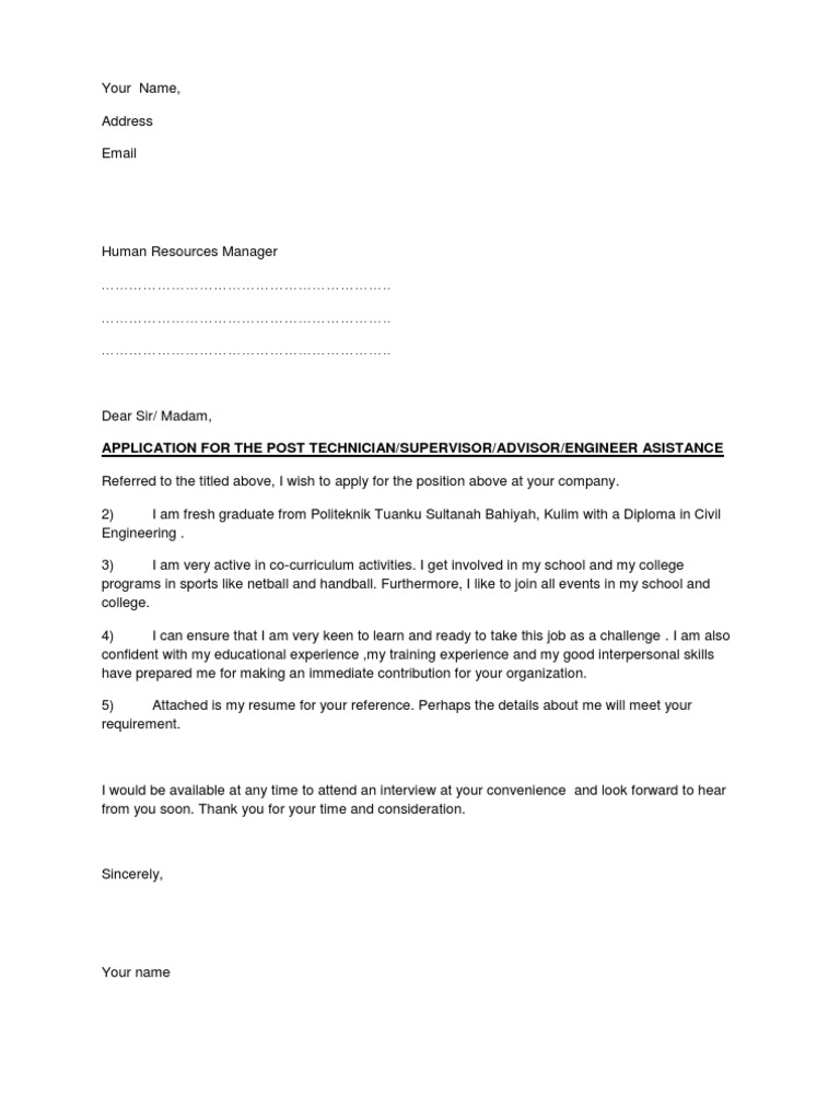 Contoh cover letter ( fresh graduate/ internship) nama anda. Make it a point to include the necessary email subject when sending your application letter via email. Contoh cover letter bahasa melayu untuk fresh graduate / internship. Surat permohonan pekerjaan ataupun cover letter hendaklah dilampirkan bersama dengan resume, tak kisahlah sama ada resume bahasa melayu mahupun bahasa inggeris ketika anda ingin mencari pekerjaan. 3 types of sample cover letters that stand out (for fresh graduates) we know it's not easy to write a cover letter.