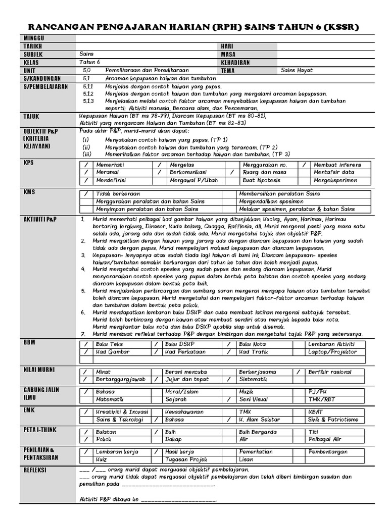 Rancangan pengajaran harian (rph) mengandungi butiran seperti tarikh, hari, masa, mata pelajaran, kelas, tajuk, objektif, kemahiran yang ingin dicapai, aktiviti yang dijalankan, bahan bantu mengajar yang digunakan dan refleksi. 8 thoughts on rph bahasa melayu. Share to twitter share to facebook share to pinterest. 6 rph(bm tahun 5,tahun 4,mt thn 2 dan refleksi. Home explore rph bm thn 5 2020. Jika ini rph bm tahun 6. Jagalah alam kita hasil pembelajaran : 12:18 pg salasiah binti kedit no comments. Click to view flipbook version. Kata nama khas other contents: Latihan bahasa malaysia online sekolah rendah. Rph bm tahun 4 kssr semakan unit 3 masyarakat berilmu 1. Sila check spam jika tiada dalam inbox.